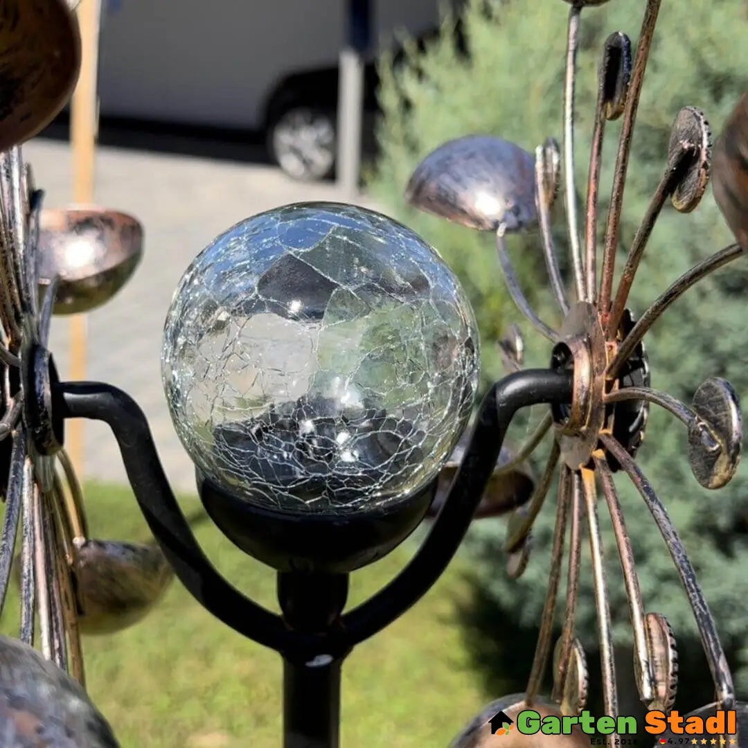 Das magische Metall-Windrad hat eine mehrfarbige, rostfreie gebürstete Oberfläche und einen stabilen Pfahl an der Basis, der allen Wetterbedingungen standhält, robust und langlebig für windige Tage.