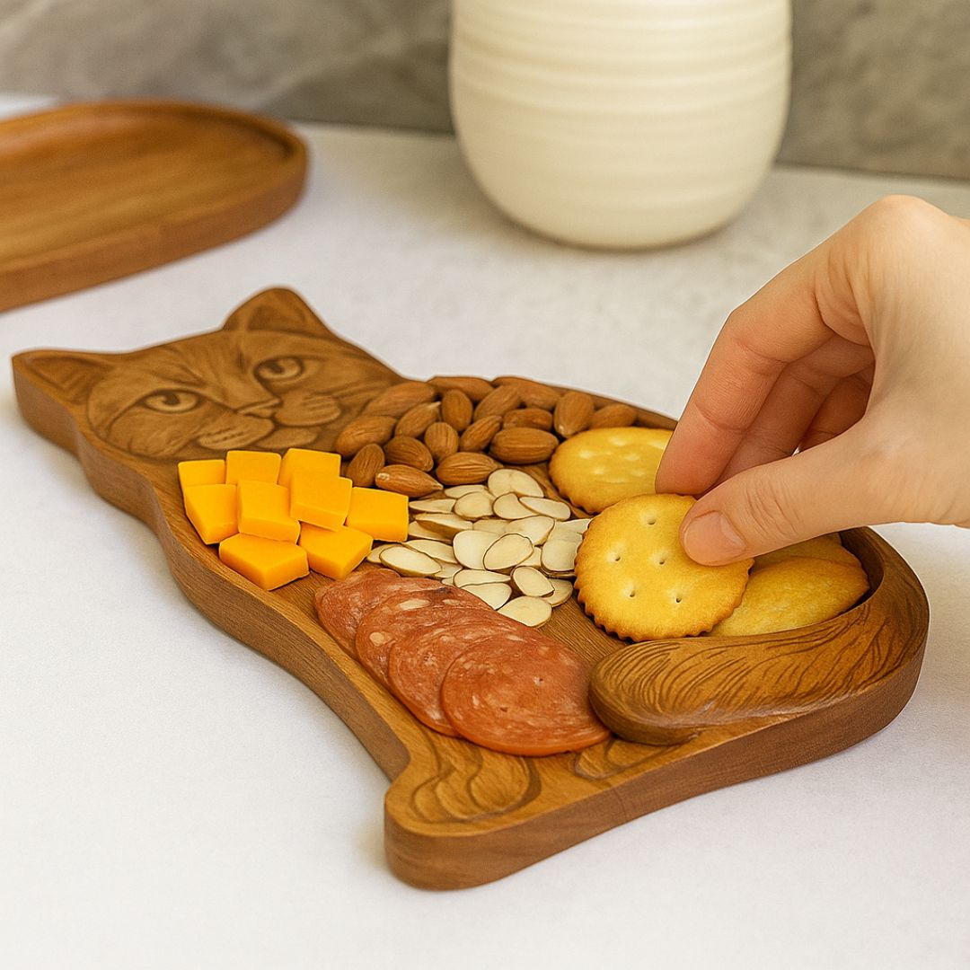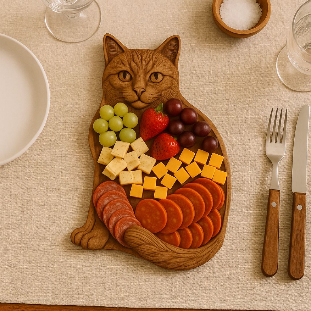 "Diese Platte ist nicht nur praktisch, sondern auch ein echter Hingucker bei jeder Feier – Katzencharme inklusive."
