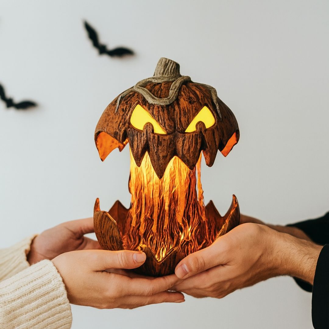 💡 Mit geschnitzter Kürbis-Optik und warmem Leuchten im Inneren – ein echtes saisonales Highlight