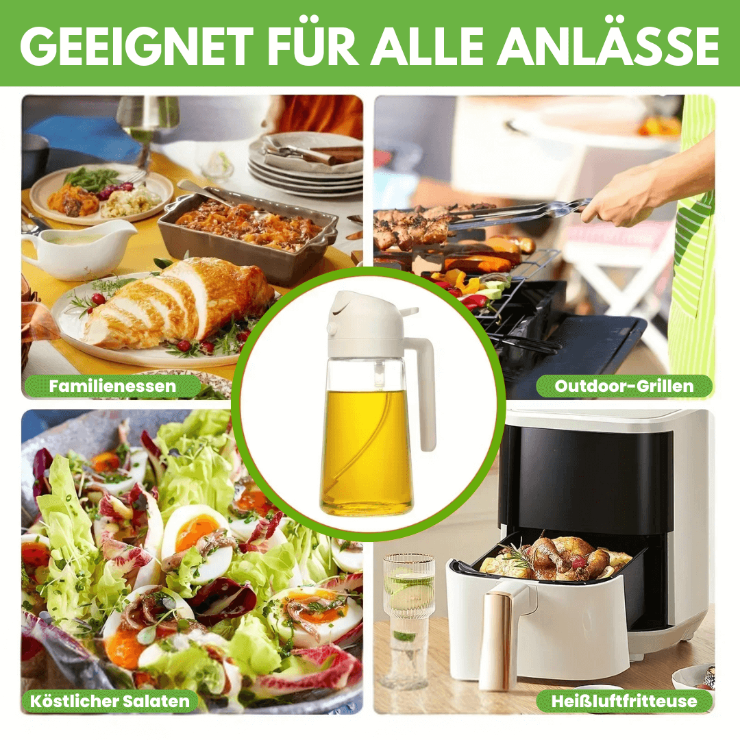 Kontrollieren Sie genau, wie viel Öl Sie verwenden. Unser Ölspender ermöglicht es Ihnen, jede Mahlzeit perfekt zu dosieren, ohne Risiko einer Überdosierung oder Verschwendung. Ideal für Salate, Pfannen und alles dazwischen.
