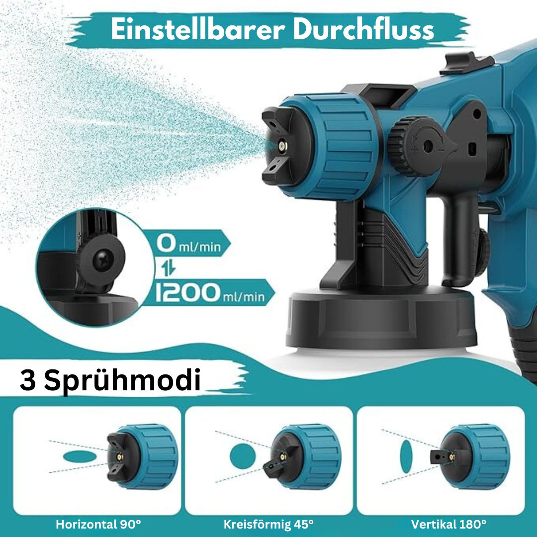 Ganz gleich, ob Sie Wände, Möbel oder Außenflächen streichen, das PaintMax-Sprühgerät sorgt jedes Mal für ein makelloses Ergebnis und ist damit sowohl für Heimwerker als auch für Profis eine zuverlässige Wahl. Das duale Akkusystem bietet eine längere Betriebszeit, so dass Sie länger ohne Unterbrechung arbeiten können.