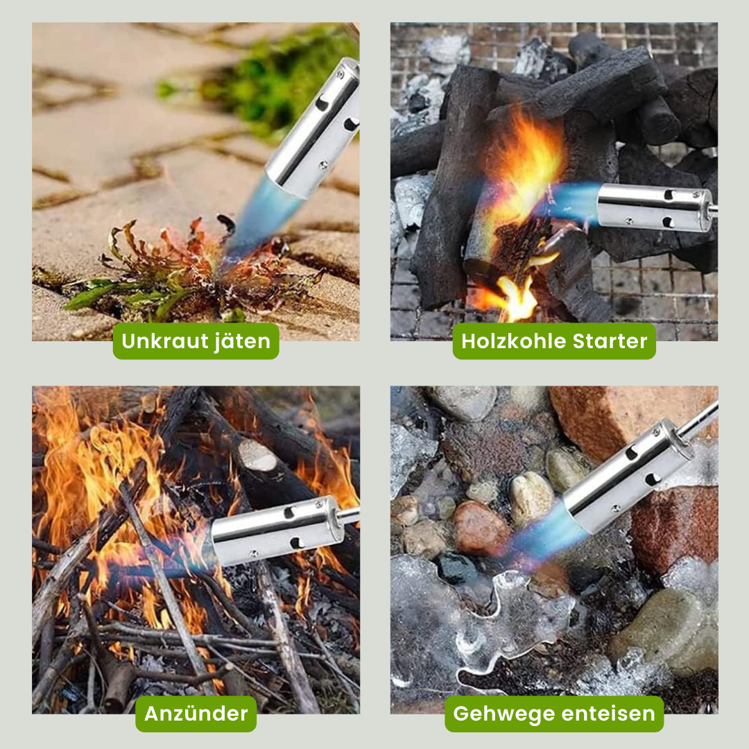 Die intensive Flamme, die bis zu 900°C erreicht und 50.000 BTU Hitze erzeugt, konzentriert sich auf den zentralen Stängel des Unkrauts, zerstört es in nur 1-2 Sekunden und verhindert ein Nachwachsen.