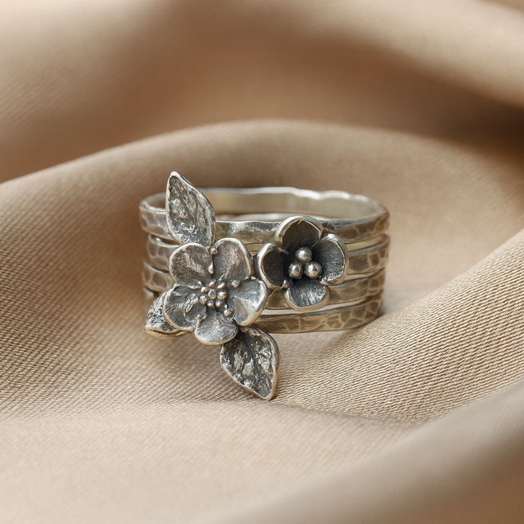 Die Blüte gilt seit jeher als Symbol für Erneuerung, Schönheit und Lebenskraft. Im Silberglanz erstrahlt diese Bedeutung noch stärker – ein Ring, der nicht nur schmückt, sondern Emotionen trägt und Geschichten erzählt.