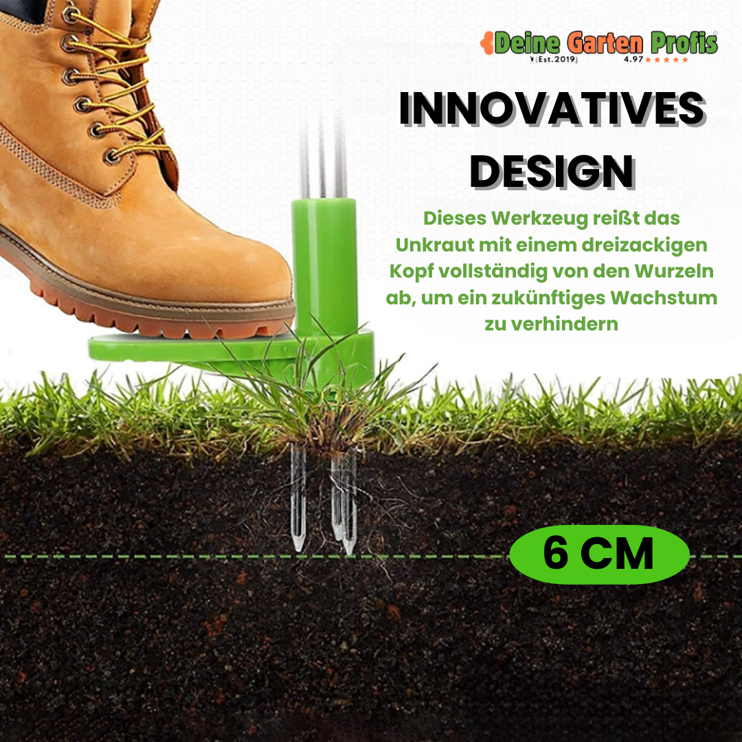 - Wurzelweg Unkrautentferner an den Unkräutern ausrichten, von der aufrechten Position aus starten.